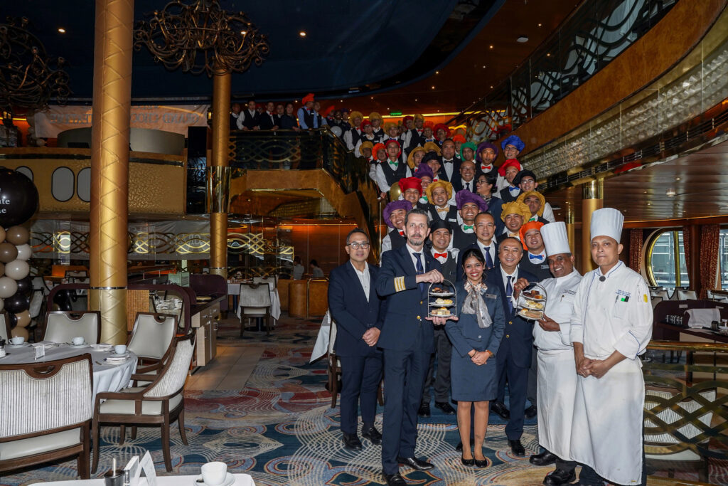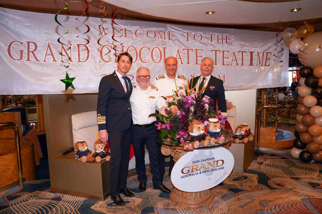 The celebration took place aboard Zaandam, where guests from both ships gathered for an elegant Chocolate Afternoon Tea designed especially for the occasion.